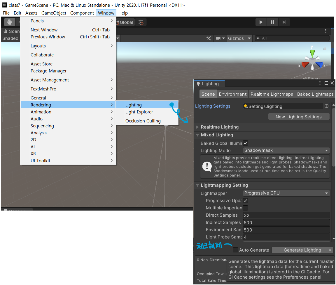 Directional Light만으로는 어둡기 때문에 Lighting을 추가해 주어야 한다.